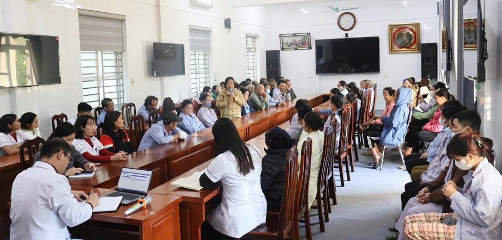 Tham dự có BSCKII: Đặng Ngọc Anh Phó giám đốc TTYT khu vực Đà Bắc, đại diện các khoa phòng, đội ngũ y bác sĩ, điều dưỡng và sự có mặt của 65 người bệnh, người nhà người bệnh đang điều trị tại đơn vị.