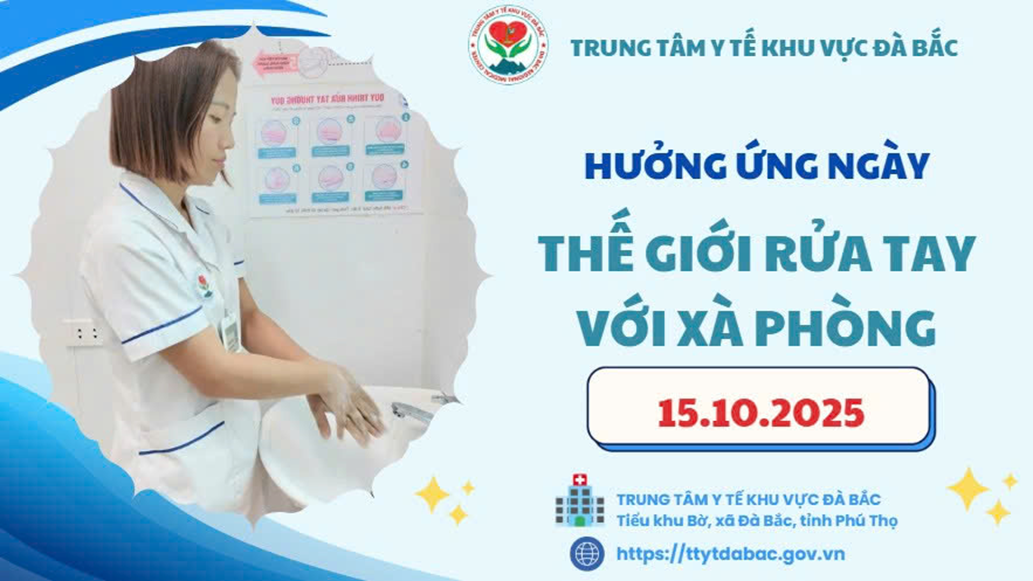 Hưởng ứng Ngày Thế giới Rửa tay với xà phòng năm 2025. Trung tâm Y tế khu vựcBắc kêu gọi toàn thể cán bộ, nhân viên y tế, người bệnh, người nhà người bệnh và cộng đồng cùng thực hiện hành động thiết thực như: