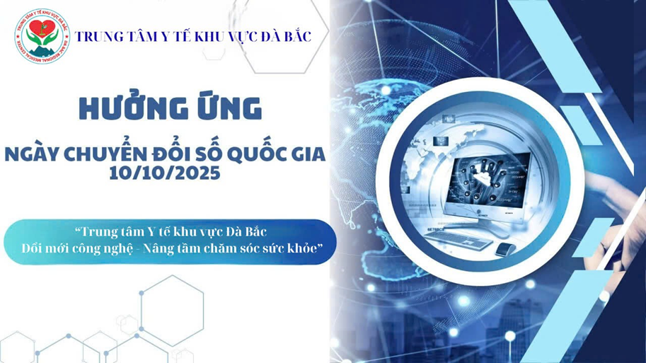 Hưởng ứng Ngày Chuyển đổi số quốc gia (10/10/2025), Trung tâm Y tế khu vực Đà Bắc tích cực triển khai nhiều hoạt động thiết thực, đẩy mạnh ứng dụng công nghệ số trong công tác khám, chữa bệnh và quản lý y tế, góp phần nâng cao chất lượng phục vụ người dân.