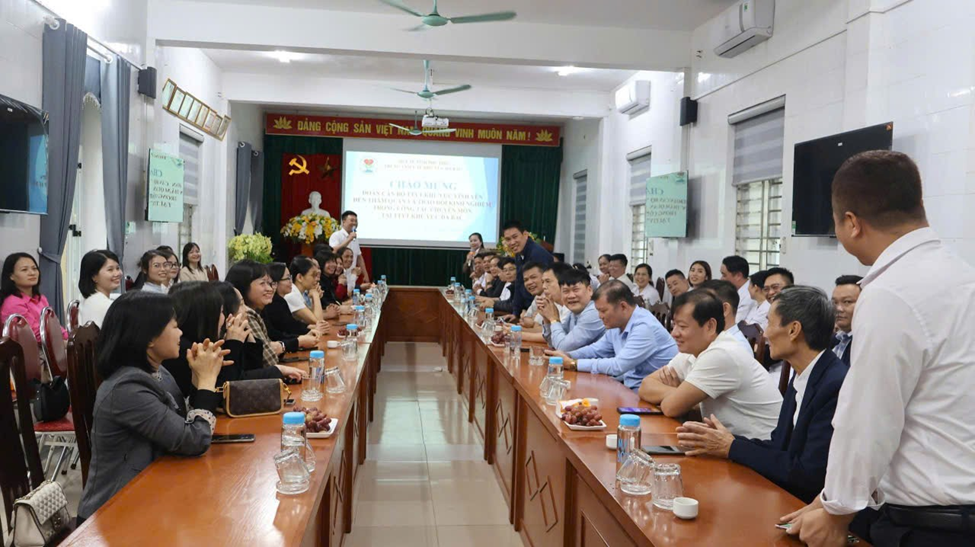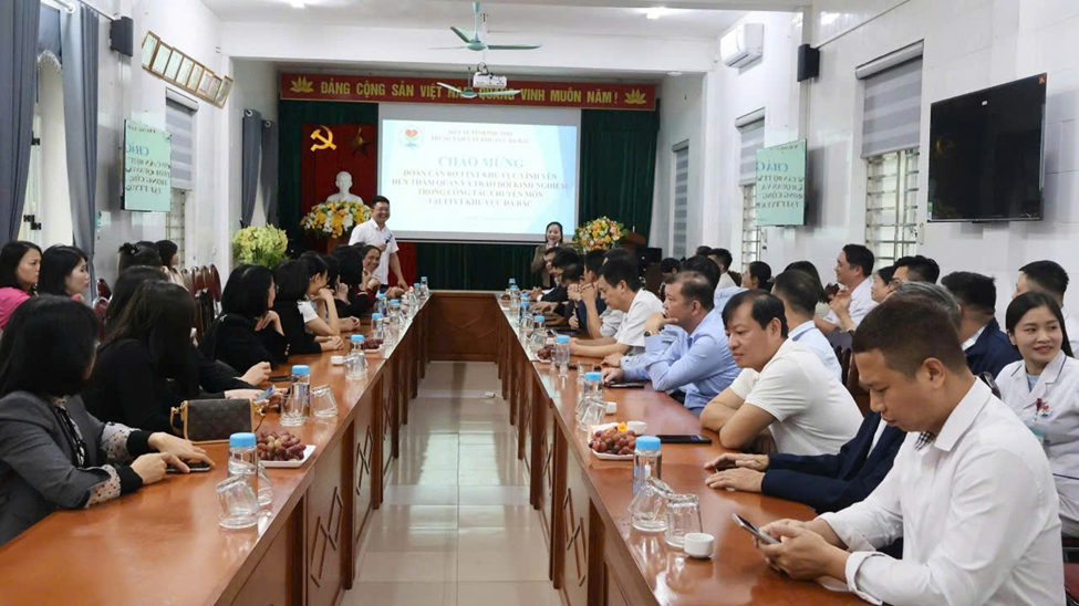 Tiếp đón và làm việc với Đoàn có BS CKI. Phạm Thị Tuyết - Giám đốc Trung tâm Y tế khu vực Đà Bắc, Ban Giám đốc cùng đại diện lãnh đạo các khoa phòng của Trung tâm gồm các trưởng, phó các khoa phòng, điều dưỡng/nữ hộ sinh/kỹ thuật viên trưởng các khoa phòng.