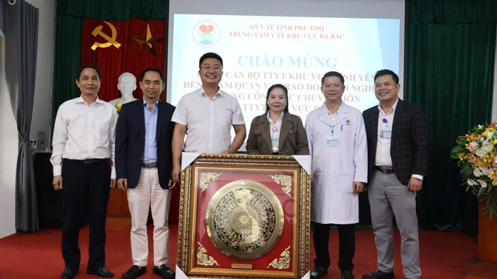 Ban giám đốc TTYT khu vực Vĩnh Yên tặng quà lưu niệm TTYT khu vực Đà Bắc